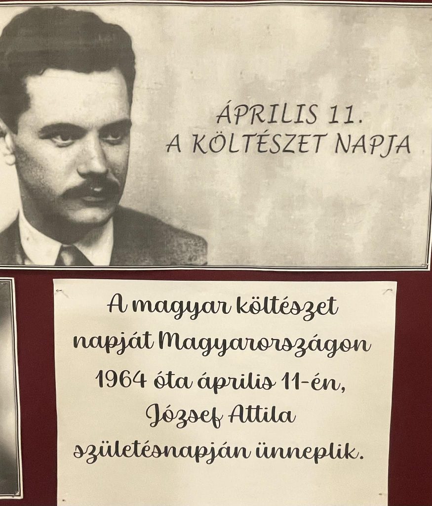 Az iskolába érkezve egy mosolygós József Attila kép fogadott bennünket, s az aulában a paravánon képekben idéztük meg a költőóriást. Idén nem csupán József Attila születésnapjára emlékeztünk. Csukás István születésének 90. évfordulója alkalmából kedves kis állatversekkel, vidám illusztrációkkal igyekeztünk közelebb hozni a költészetet  a kisebbek számára is. Reggel az épületben az iskolarádión keresztül felcsendülő megzenésített versek különös hangulatot teremtettek, a szokottnál sokkal vidámabban indították a napunkat.