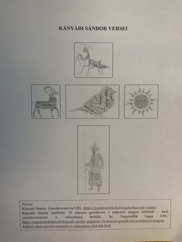 József Attila Kertész leszek című versének sorait rendezgettük, Weöres Sándor verscímeit keresgettük anagrammák alapján. Népszerűek voltak a kortárs költőink verseivel kapcsolatos rejtvények is. Kis „költőink” örömmel készítettek versátiratokat. A hetedikesek kedvenc verscímekeit rajzolták meg graffiti stílusban. 5-6. osztályban pedig  verspólókat készítettek az érdeklődő diákok úgy, hogy a kedvenc idézeteik mellé illusztrációk kerültek a pólókra.
